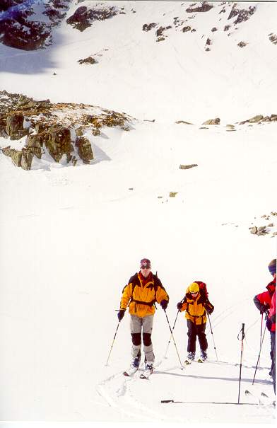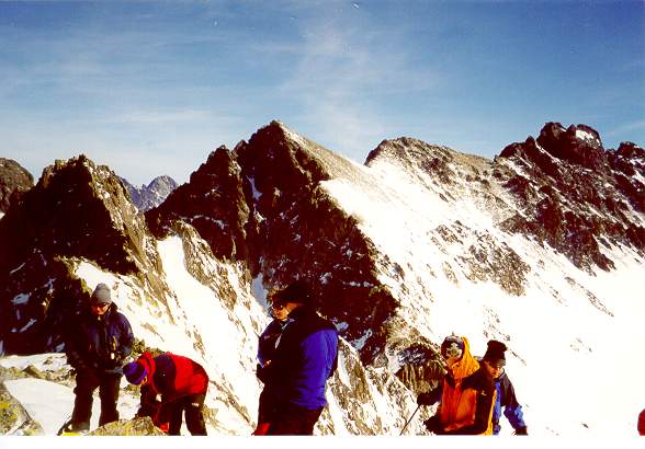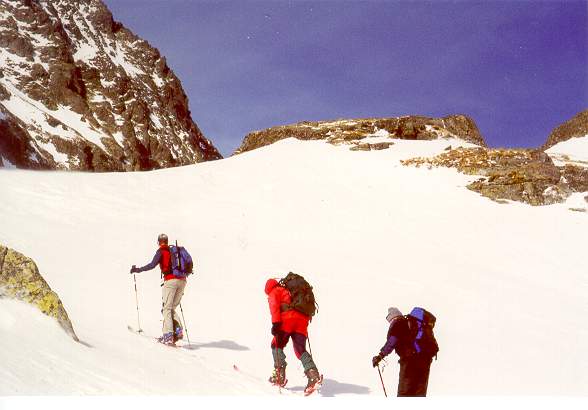 dolinou a na druhu stranu peknym tiahlim sirokym zlabom do sedla napravo od Vychodnej Vysokej. Tam uz bol hore taky vietor, ze niektory si ho radsej ano nesli vyskusat. Sigi ho popisal vystizne: