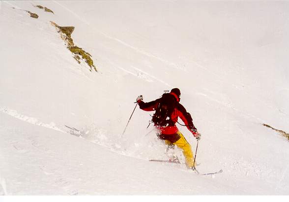 sme s rozvahou cakali az do 10, kedy sa to trochu roztrhalo, proti vetru sa dalo udrzat a vyrazili do vcera nezlizovaneho zlabu za Krcmarakom (to je ten co sme sa